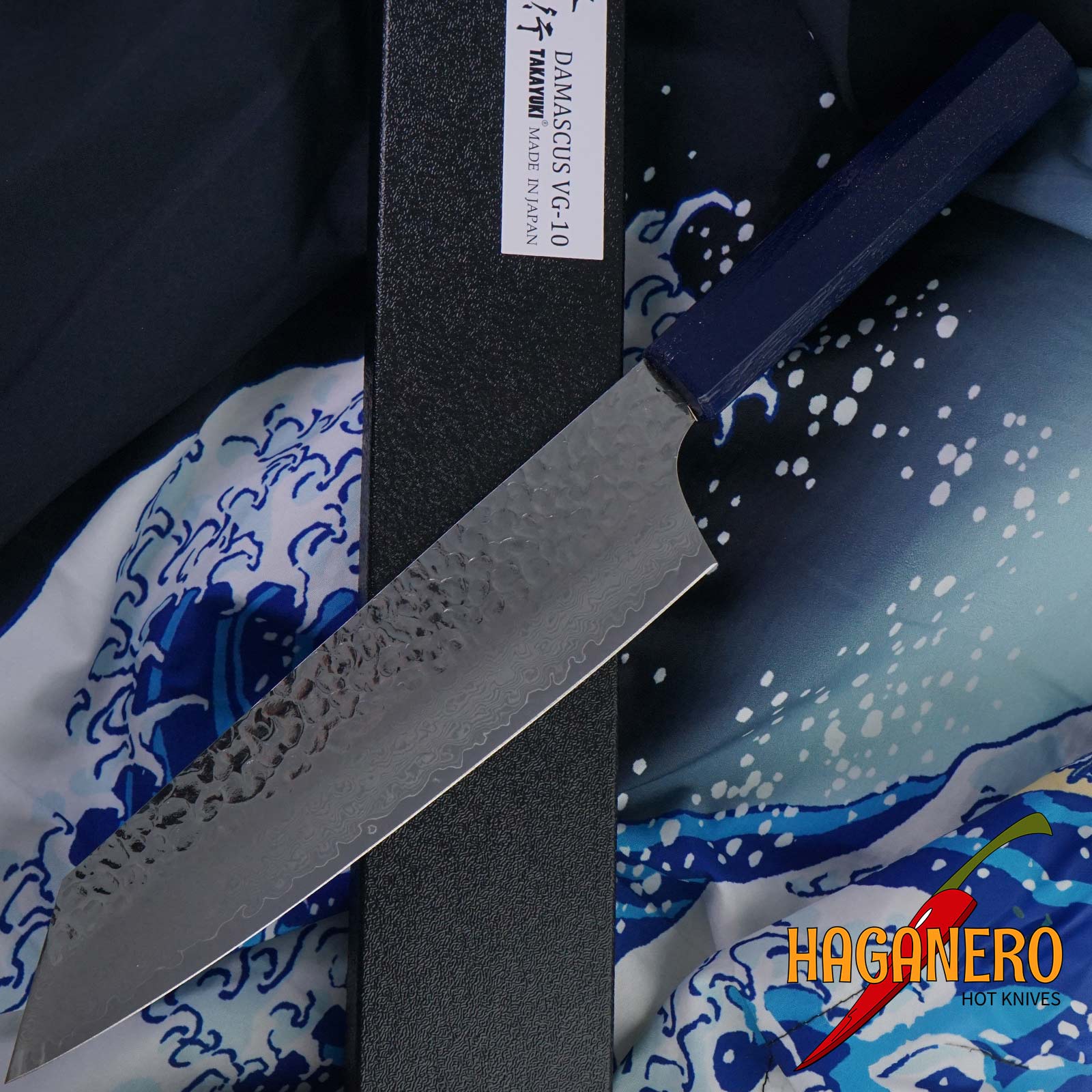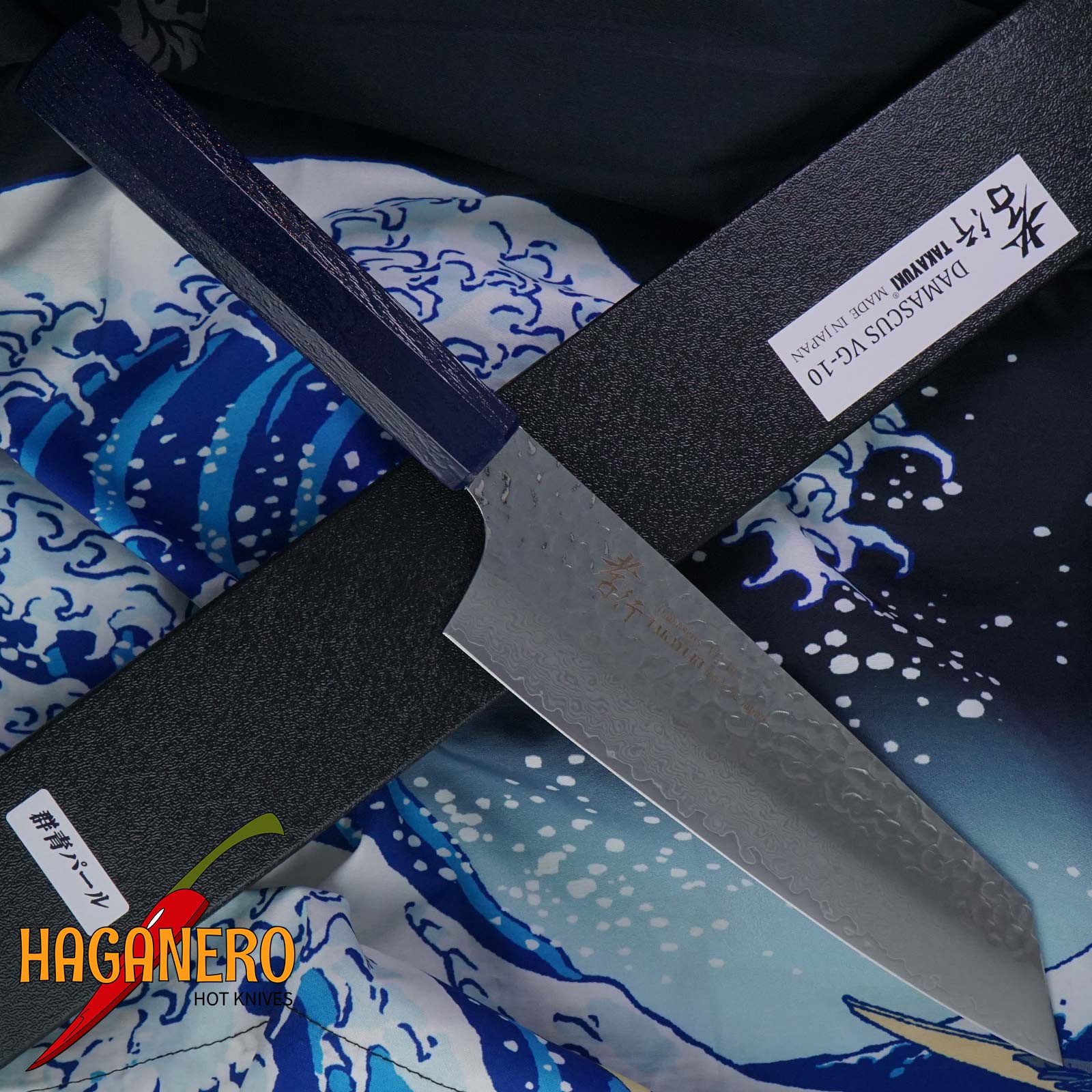 Gyuto japansk køkkenkniv Sakai Takayuki Kengata Nanairo Pearl Blue 14598 19 cm