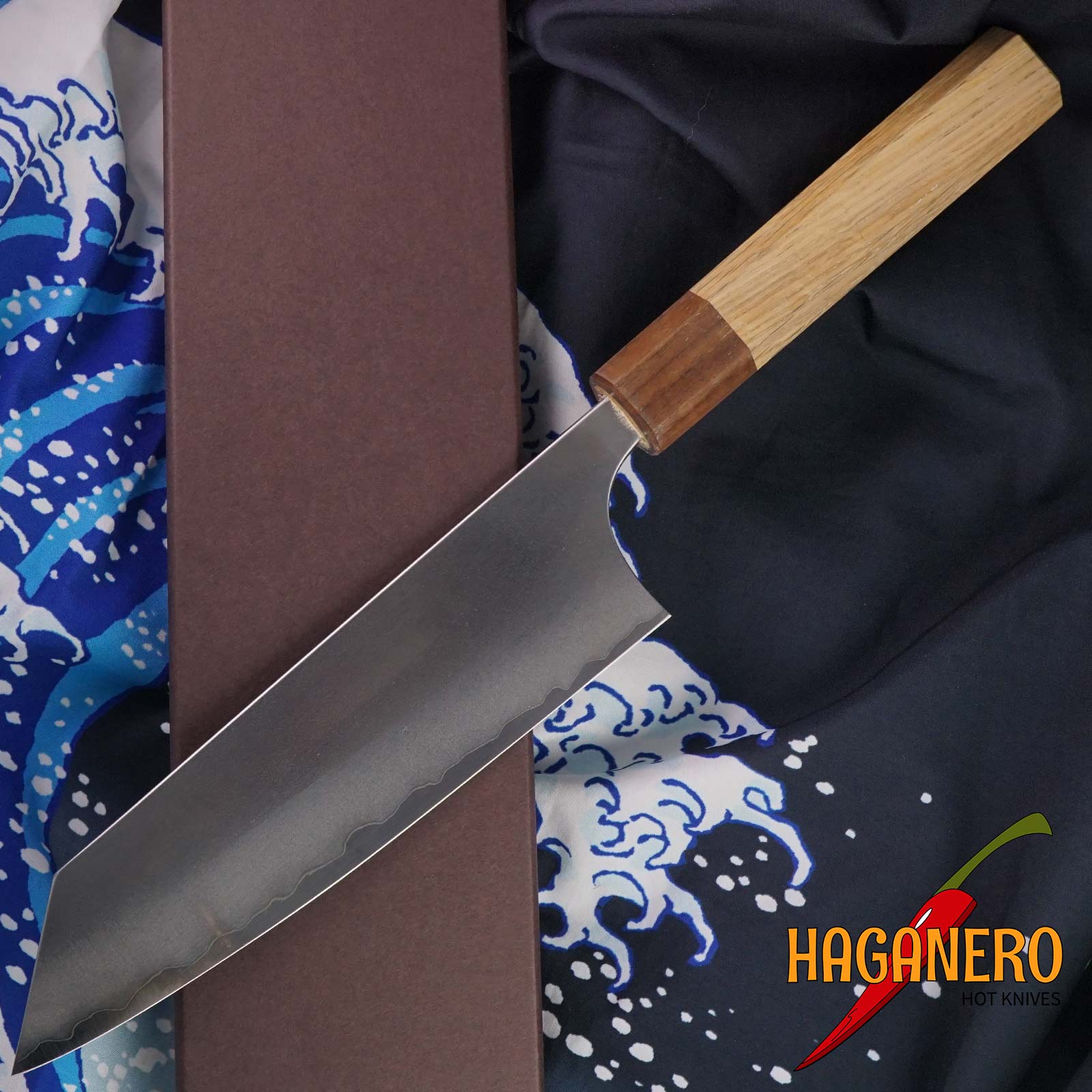 Yoshimi Kato, ein lizenzierter traditioneller Handwerker in Takefu, Präfektur Fukui, Japan, schmiedet das Bunka-Küchenmesser von Hand.Die Klinge besteht aus Super-Aogami-Kohlenstoffstahl. 170 mm ist die Klingenlänge. Griff: Walnusszwinge auf Eichenholz. Waschen Sie Ihre Hände in warmem Wasser und tupfen Sie sie trocken.