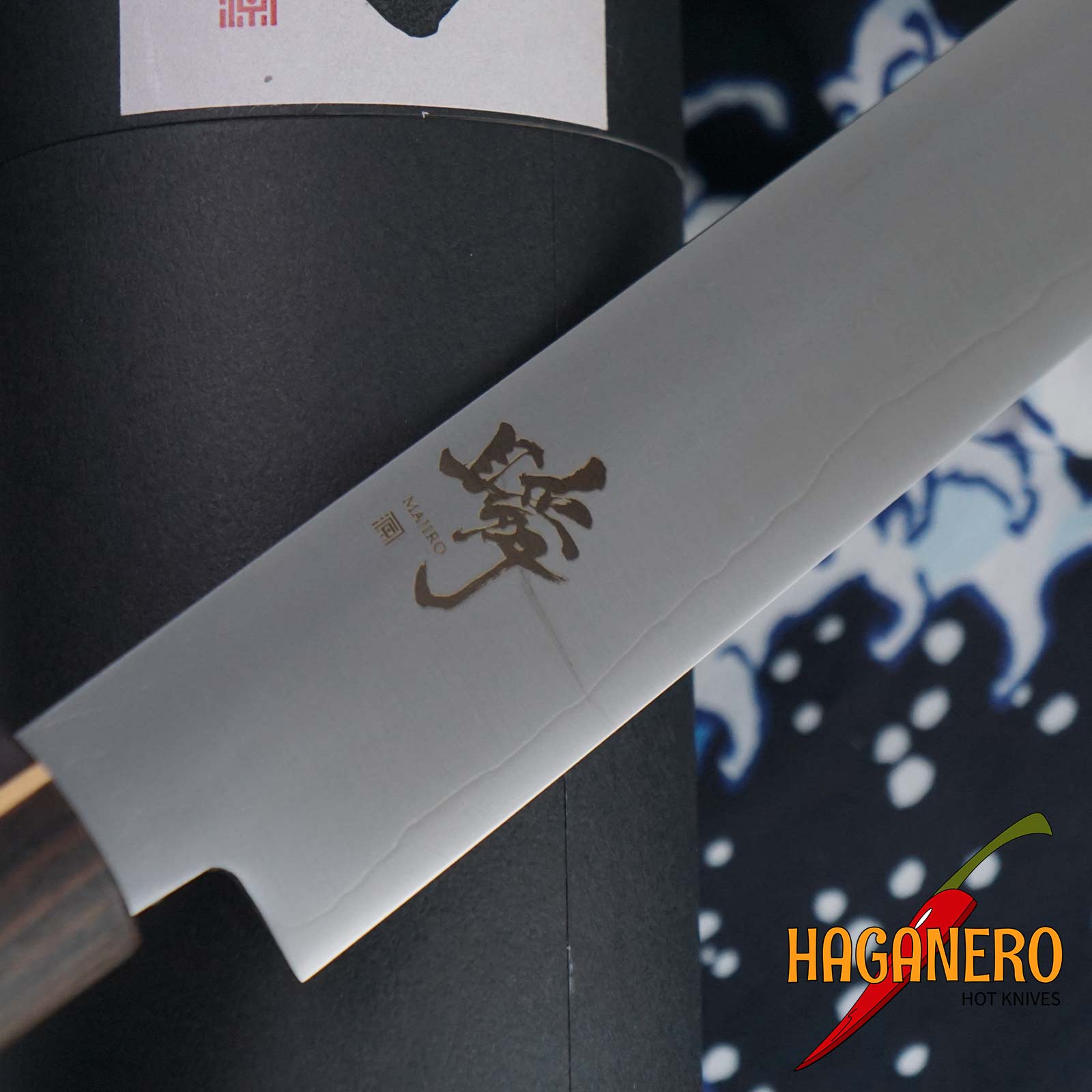 Shigeki Tanaka, ein großartiger Handwerker, hat dieses japanische Schneidemesser speziell zum präzisen Schneiden von Fleisch, Fisch und Gemüse entwickelt. Es ist perfekt für Tätigkeiten wie Filetieren, Carpaccio und dünnes Schneiden. Die 24 cm lange Klinge ist in Edelstahlhülsen eingefasst und besteht aus hochwertigem Ginsan-Stahl. Der Griff ist aus Ebenholz gefertigt, einem Material, das für seine Haltbarkeit, Stärke und schöne Textur bekannt ist. Das Gewicht des Messers beträgt 280 g. Dieses Schneidemesser muss, wie alle japanischen Küchenmesser, sorgfältig behandelt werden; die Reinigung in der Spülmaschine wird nicht empfohlen, und es ist nicht zum Schneiden von gefrorenen Lebensmitteln oder Knochen gedacht.