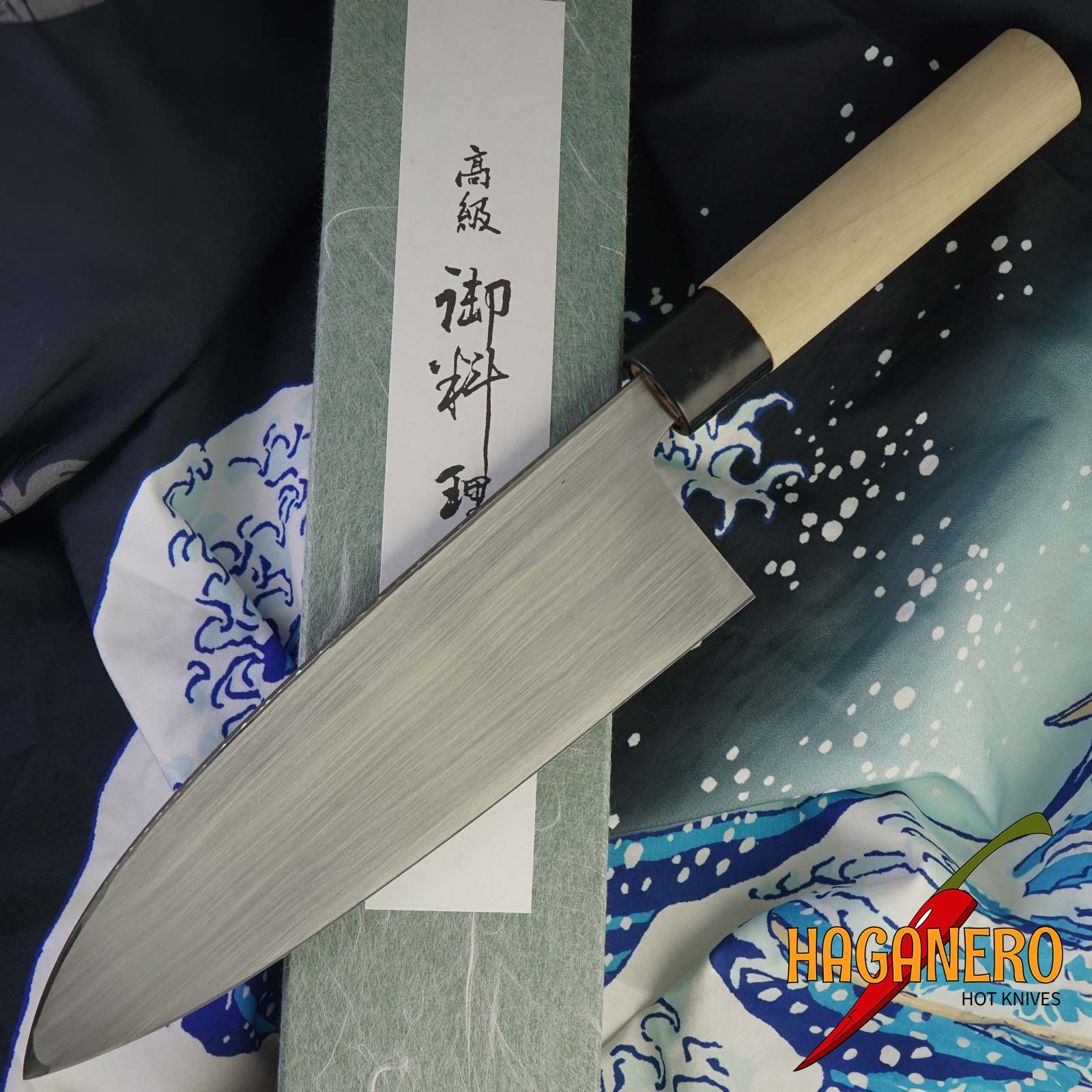 Deba 21 cm von Tojiro Hammered Black F-1077. Von Hand gefertigte Klinge aus Carbon. Seien Sie bitte vorsichtig beim Umgang mit Ihren Carbonmessern. Solche Messer sollten nicht in der Spülmaschine gewaschen, im Wasser gelassen, mit säurehaltigen Substanzen gereinigt oder zum Zerkleinern von säurehaltigen Früchten wie Zitronen verwendet werden. Trocknen Sie Ihr Messer per Hand: Dies sollten Sie direkt nach der Reinigung mit einem frischen Geschirrtuch tun. Mineralöl auftragen und einreiben. Reiben Sie eine dünne Schicht Mineralöl auf alle rostigen Stellen und lassen Sie es trocknen.