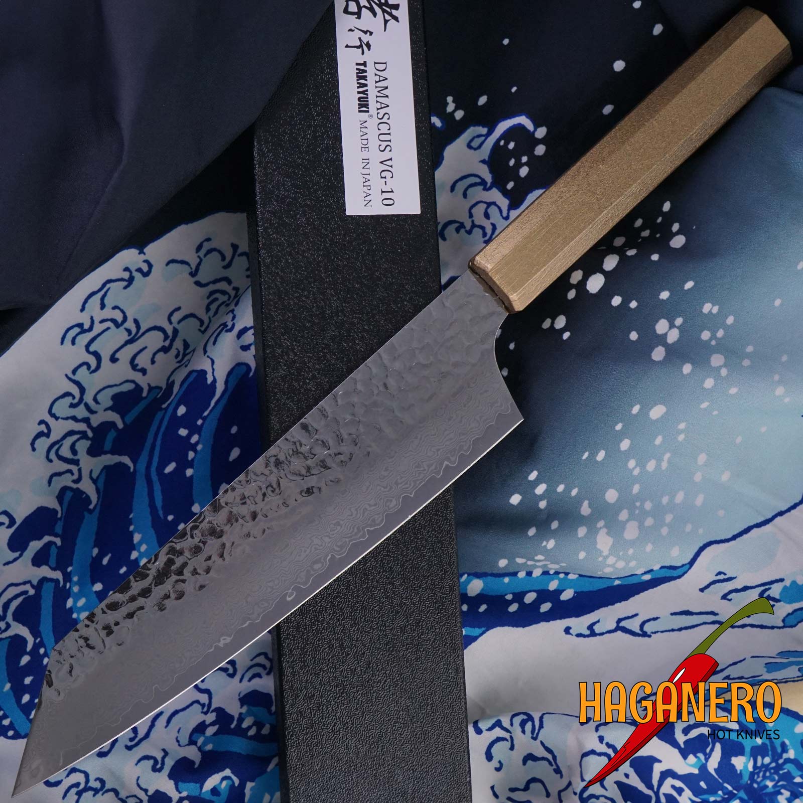 Jaapanist pärit Sakai Takayuki Gyuuto Kengata nuga on 190 mm teraga. Esmaklassisest VG10 terasest tera on erakordse korrosioonikindluse, märkimisväärse sitkuse ja pikaajalise teravuse säilitamisega. Kengata Gyuto kuju, mis ühendab traditsioonilise gyuto kohandatavuse terava K-tipuga, teeb noa ainulaadseks. Selle tulemusena on sellel noal pikem tera kui bunka noal. Jaapani stiilis "wa" käepide, mis on valmistatud vastupidavast ABS-plastikust pärlkuldse tooniga, tõstab noa elegantsi ja sulandub sujuvalt igasse interjööri. See on loodud jaapani esteetikat arvestades ning ei oma puidu puudusi, nagu lihtne puhastamine, niiskuskindlus või pragunemisele kalduvus.