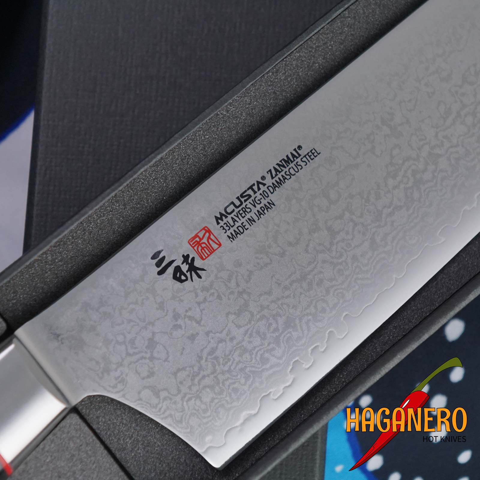 Mcusta Zanmai, a large chef's knife from the Classic Pro Zebra series with a 24 cm blade. The knife is 390 cm long overall. This huge chef's knife is perfectly balanced and fits easily in a man's hand. The blade is made of three layers: layered Damascus facings on top of a VG-10 steel core. The chef's knife Mcusta Classic Pro Zebra has a mosaic pin and a pakka wood grip. Pakka is a laminated plastic that is strengthened with phenolic resin and mostly composed of precious wood. It weighs roughly 225 grammes. It will make a wonderful gift and comes in a branded box. In Seki, Japan, Mcusta Zanmai knives are manufactured.